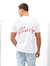 Soft fabric with a relaxed fit, our Amos T-shirt in White is great for everyday wear. Includes a large graphic on the back and a small print on the front.