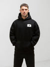 The Apex Label Hoodie in Black is crafted from a soft cotton blend, featuring a loose, relaxed silhouette perfect for lounging and low-impact activities. It includes crossover hood detailing and a front pocket and ribbed cuffs and hem. The hoodie is finished with our Apex Label branding on the chest.