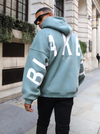 Introducing our best-selling Idris Hoodie in Deep Green, our flagship product. Made from a soft cotton blend with an oversized fit, the hoodie features a ribbed hem and cuffs, as well as a large front pocket. It showcases our logo screen-printed across the back and arms, offering a clean and bold representation of our brand.