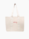 The Script Tote is the perfect bag for all your necessities. Made from strong material and with thick straps, this bag can hold plenty without fear of breakage.