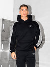 Our Zayd Relaxed Hoodie in Black includes a taped sleeve stripe and an embroidered logo on the chest. Pair with with Zayd Wide Leg Sweatpants for a complete look.