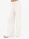 The Zoey Ribbed Wide Leg Trousers in Off White feature super-soft knit fabric and a flattering wide-leg fit. Perfect for lounging or layering with matching pieces.